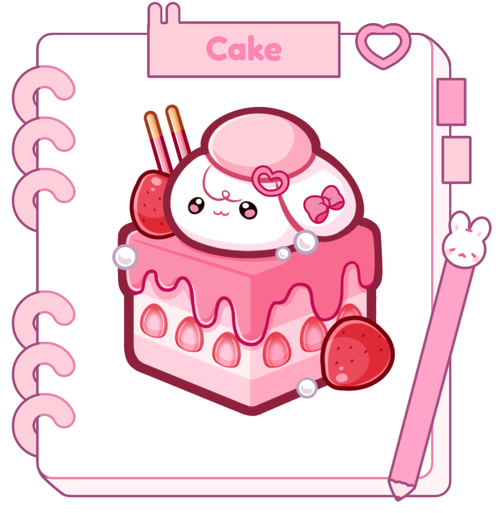 Anime style illustrations served with bonbon fondant and strawberry layered cake.