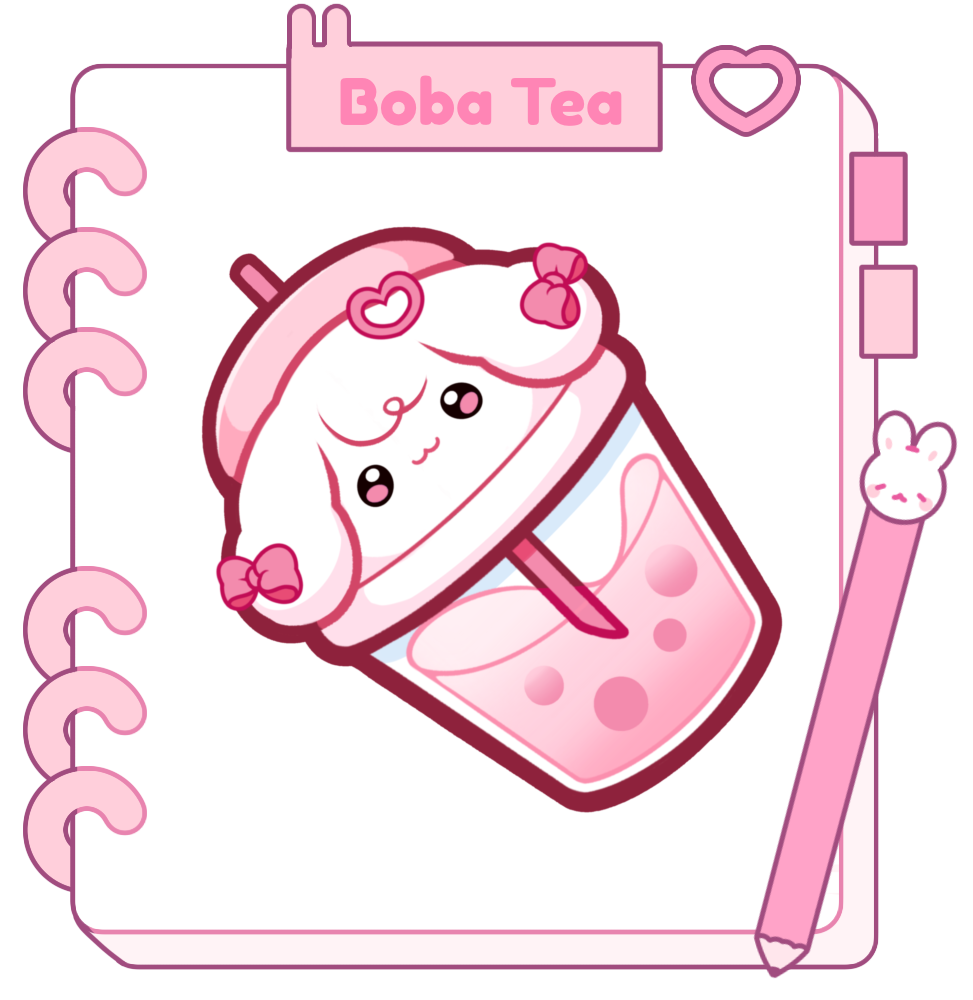 Badges served with strawberry flavored boba tea with mochi pearls.